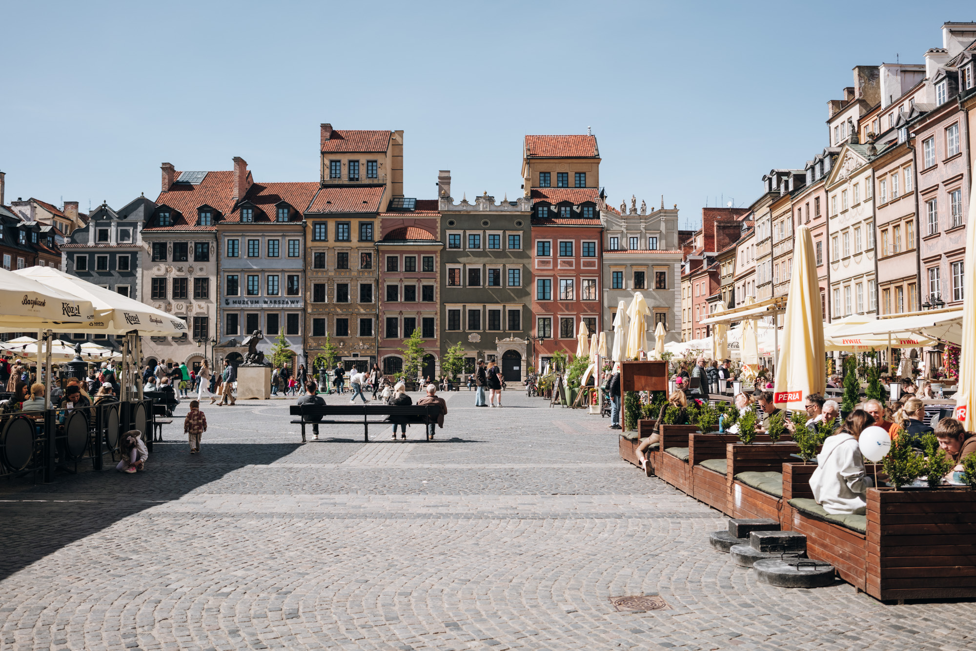 On continue ensuite vers le Rynek, la place du marché de la Vieille Ville. C’est l’un des lieux les plus vivants de Varsovie : agréable pour manger une glace en été ou faire du patin à glace en hiver.