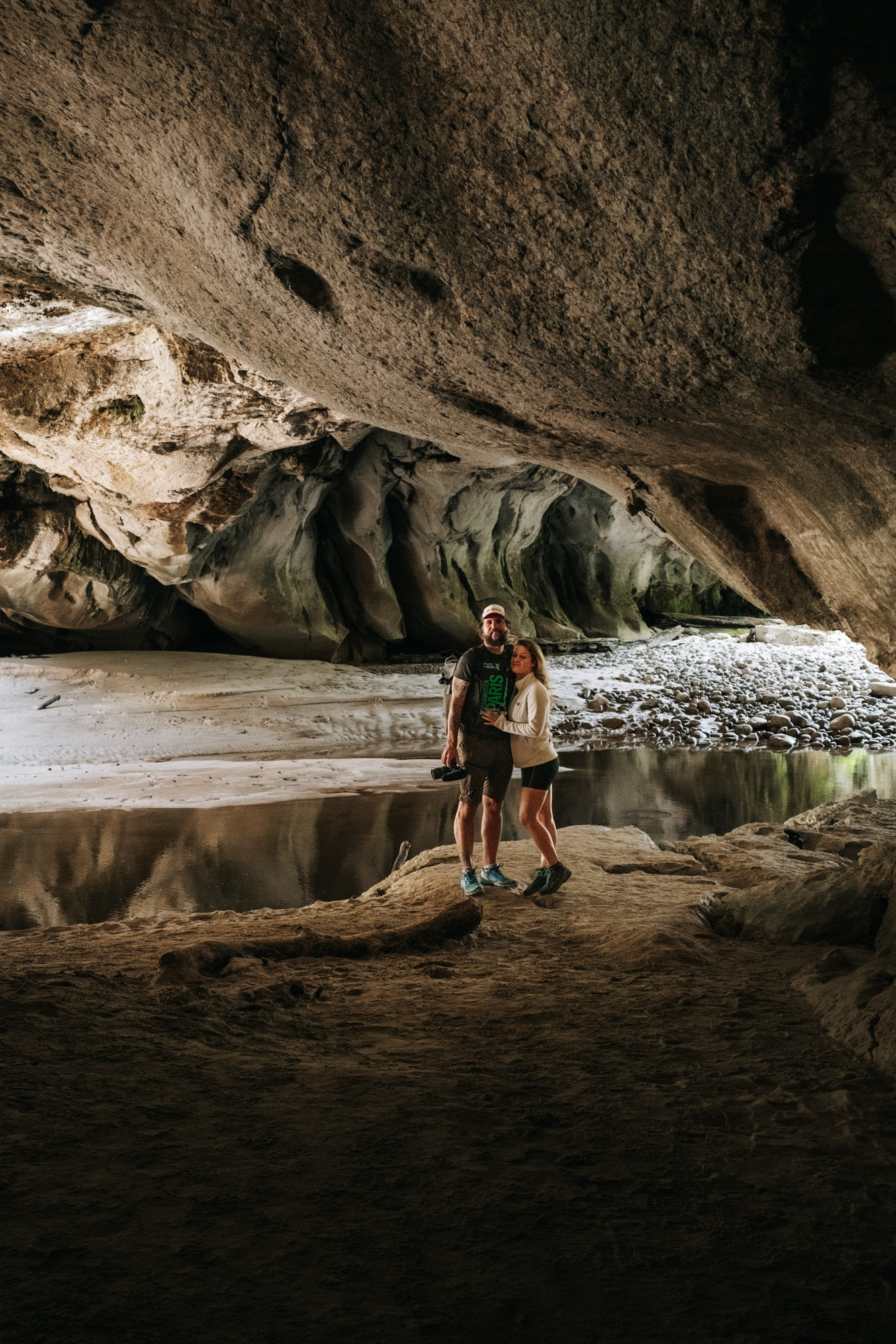 En venant du Nord, nous avons fait un détour pour aller à Karamea, c’est le lieu le plus reculé de la côté ouest mais c’était wow. Les formations d’arches calcaires constituent une caractéristique particulière de la région. Tu peux marcher jusqu’à l’arche d’Ōpārara, qui enjambe la rivière Ōpārara, ou vous aventurer plus loin pour découvrir l’arche de Moria Gate.