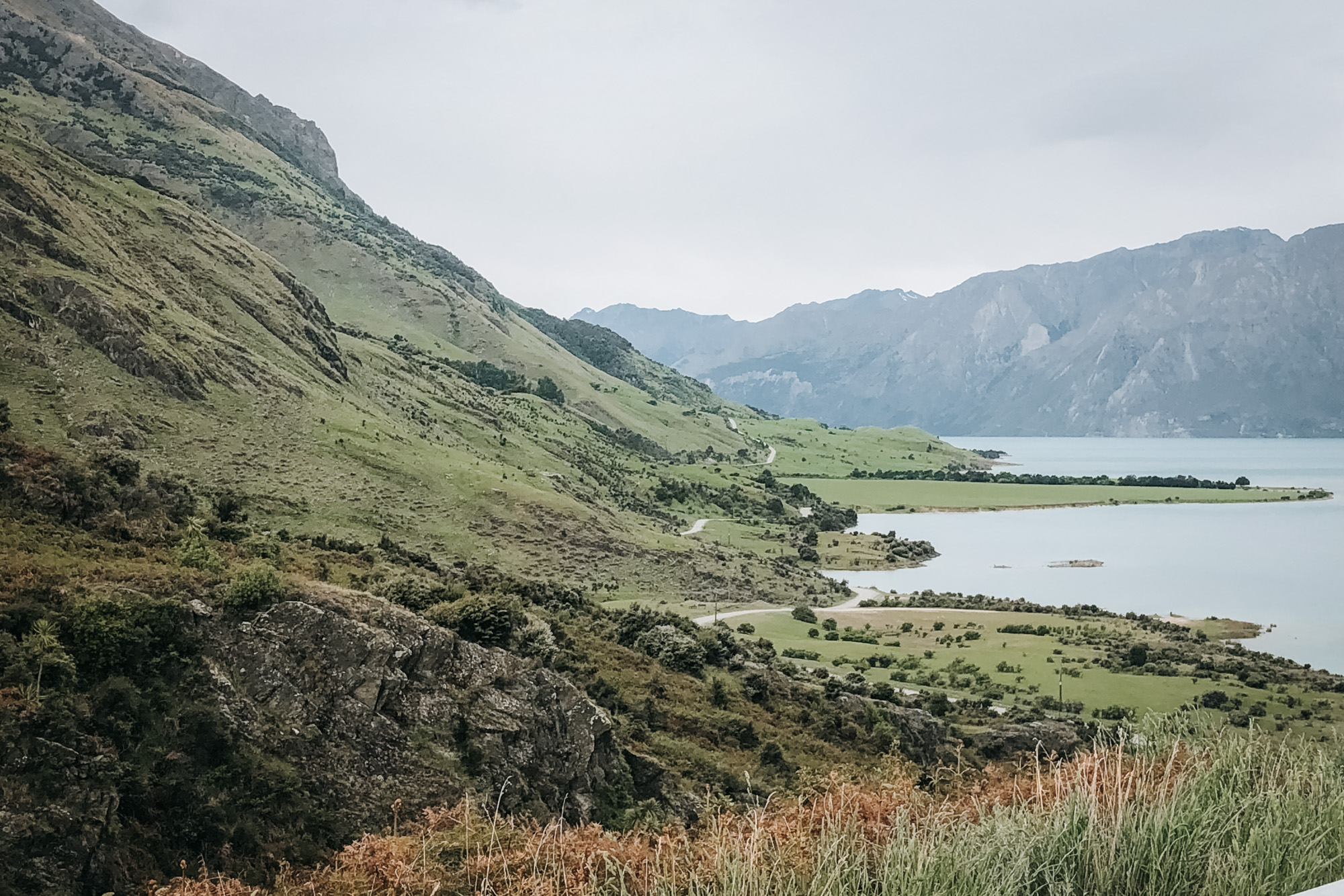 Par la suite, nous avons pris la route direction Wanaka via Haast. C’était une journée pluvieuse et nous ne sommes pas arrêtés à Haast mais si tu as le temps ça vaut le coup, des eaux turquoise éclatantes aux montagnes imposantes et aux grottes spectaculaires, les passionnés de photographie et les amoureux de la nature seront comblés.