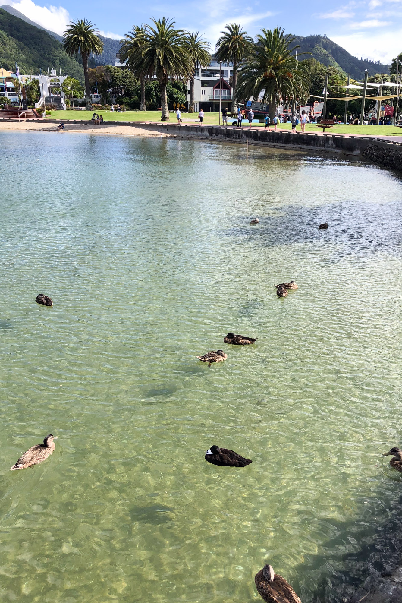 Elle est aussi une petite ville portuaire où débute pas mal de randonnées tout autour pour longer la côte. Quand nous sommes arrivés nous sommes partis vers l’ouest en passant par Blenheim tout de suite mais au retour on a passé une après-midi. Nous nous baladés un peu sur le port profiter du soleil mais on n‘a pas eu le temps de faire des randonnées comme pour ex celle appelée Câble Bay : il te suffit de commencer la randonnée de la côte pour prendre de la hauteur et observer la plage.